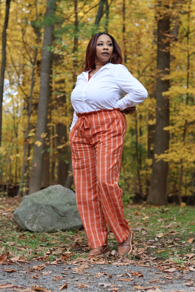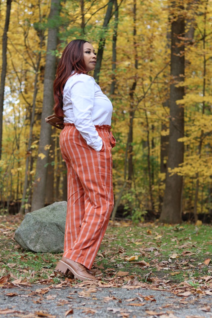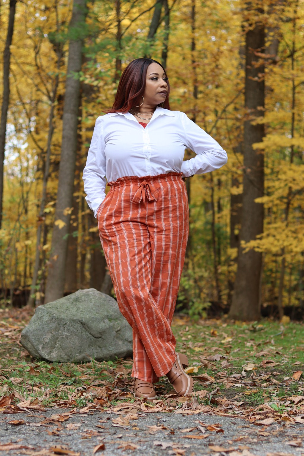 Pairings:. I paired my pants with my rust colored long sleeve t-shirt underneath my white button down shirt (both ready to wear) and my peanut butter chunky loafers!