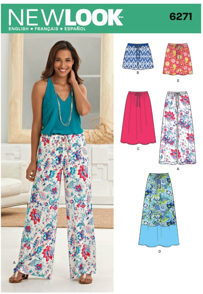 Pattern Description: New Look Sewing Pattern Misses’ Skirt in Three Lengths and Pants or Shorts. Make a bottom for any outfit at any time of year with these skirts and wide leg pants or shorts. Long skirt has contrasting lower hem band. All items have elastic drawstring waist.