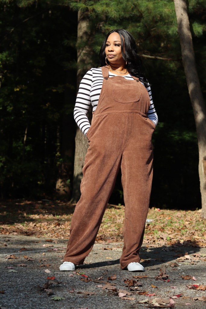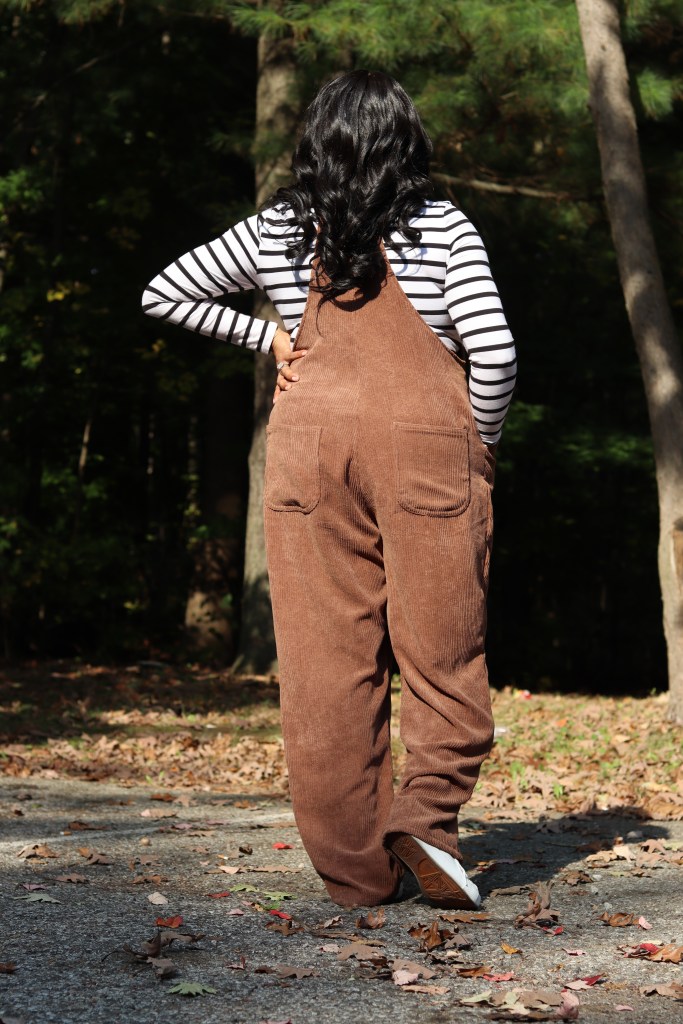 These overalls are called my Pumpkin Spice Latte Dungarees! The color of the fabric resembles a pumpkin spice beverage that can easily be ordered from a barista, and it’s definitely a fall color. Everything about this overall garment reminds me of Fall. So let’s talk about the pattern.